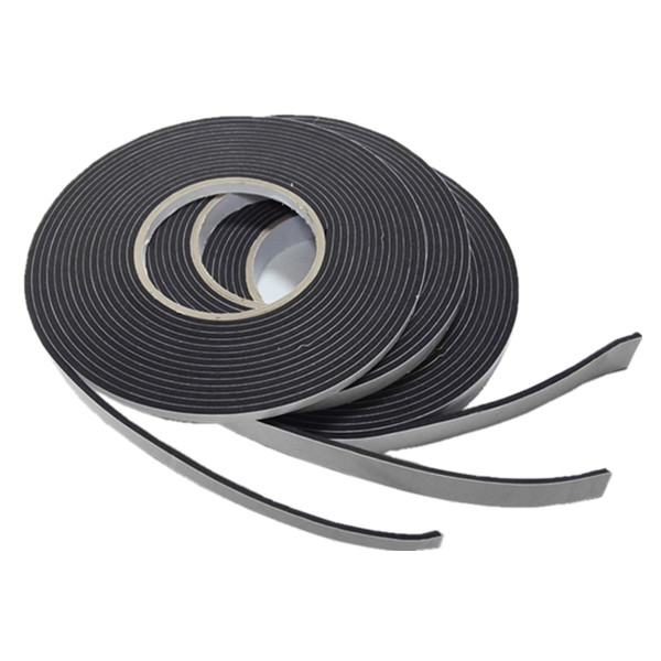 Soft black double side door and window sealing strip is s made by 300-400kg/m3 density PVC foam. The foam sealant combines a closed-cell polyvinyl chloride foam substrate with a pressure-sensitive adhesive on both sides.